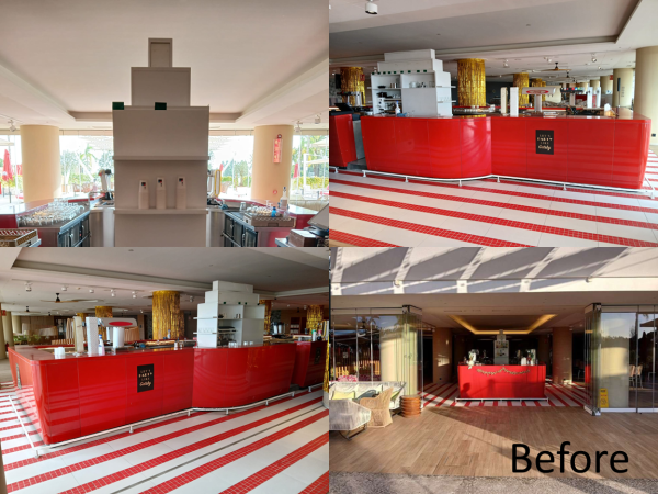 Club Med Marbella’s layout was designed to improve staff’s operation. It integrates functional storage solutions, such as a sleek waste bin mechanism and overhead glass storage, ensuring efficiency while maintaining a clean, modern aesthetic.